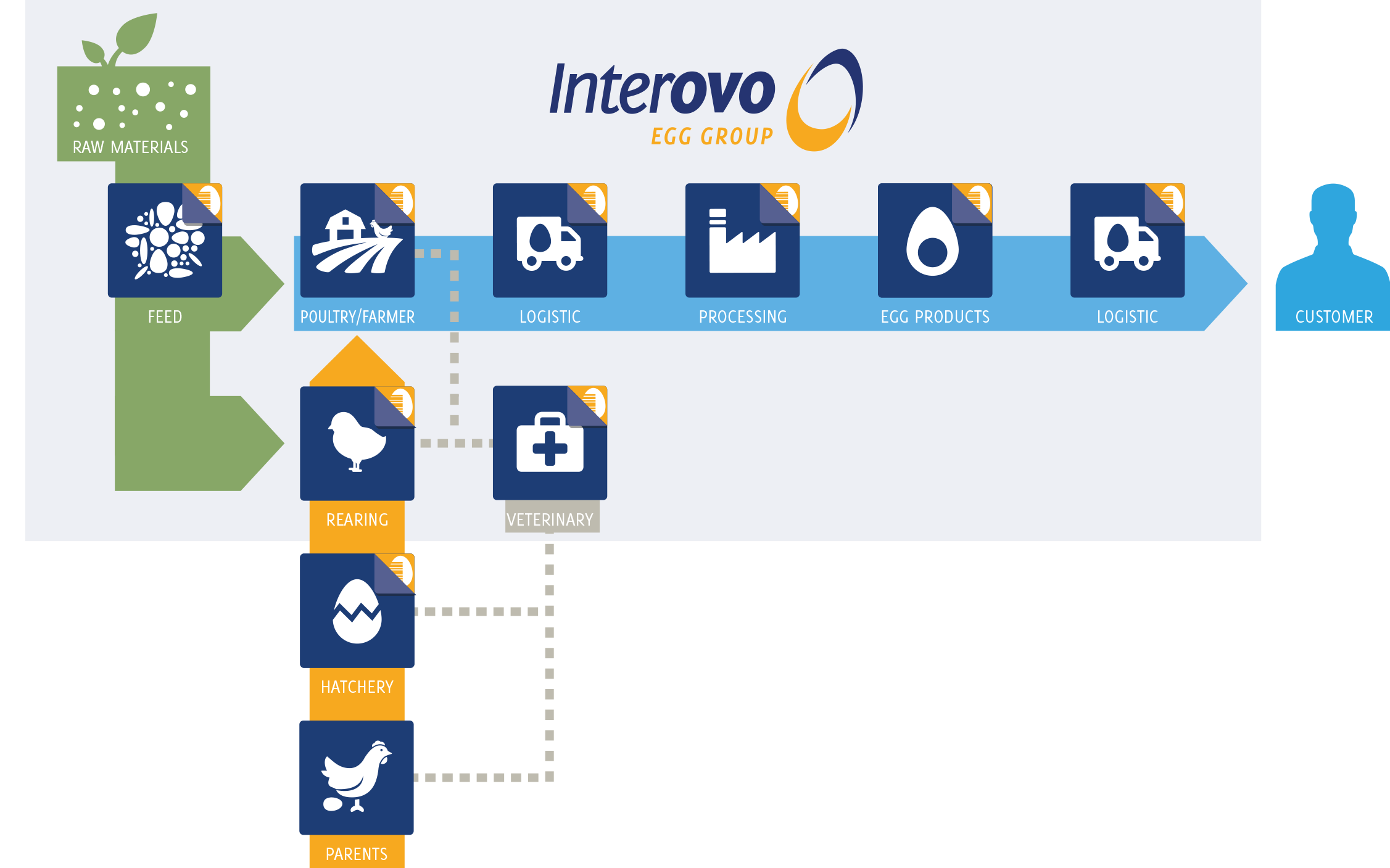 Zur Gewährleistung der Rückverfolgbarkeit der Produkte verwenden alle Unternehmen das Datenerfassungssystem EggTraceBase®. EggTraceBase® wird schon seit Jahren in der gesamten Interovo Egg Group verwendet. Durch die Einbindung von Gliedern in die Lieferkette ist den Unternehmen als auch den Kunden ein sicheres und rückverfolgbares Produkt garantiert.